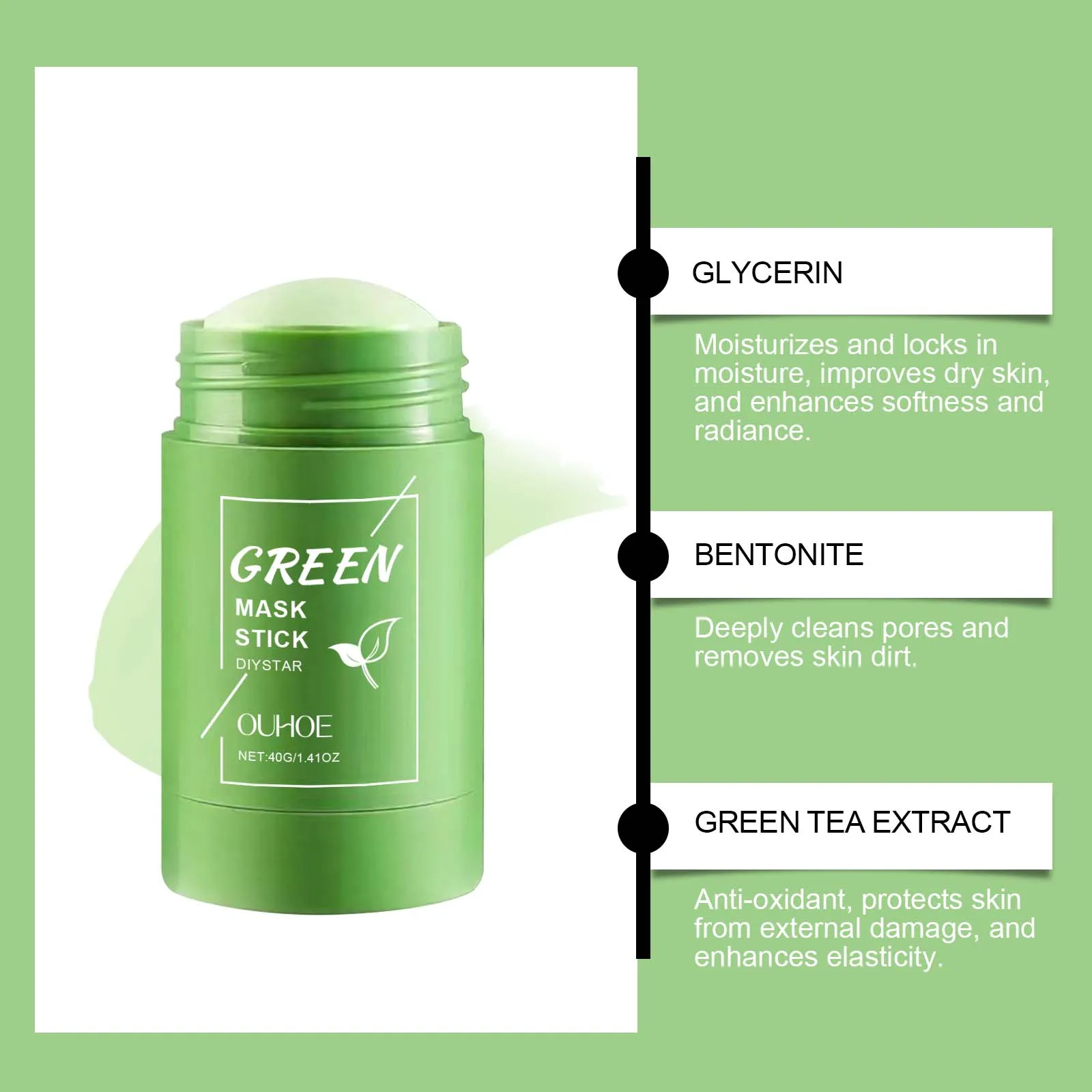 3. Green tea solid cleansing mask contains green tea extract, which can effectively clean skin pores, deeply clean skin dirt, adjust skin water and oil balance, replenish skin moisture, and nourish skin.