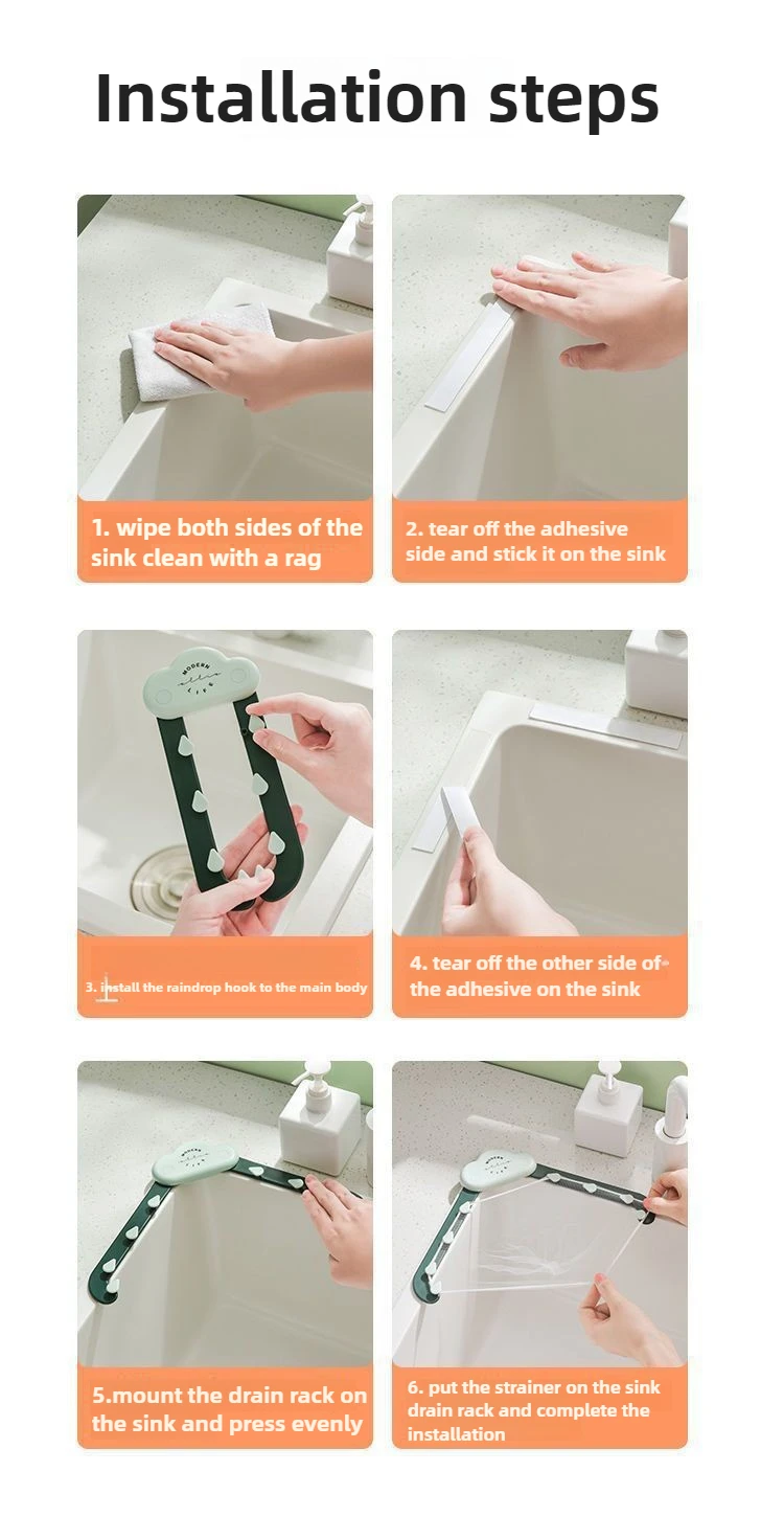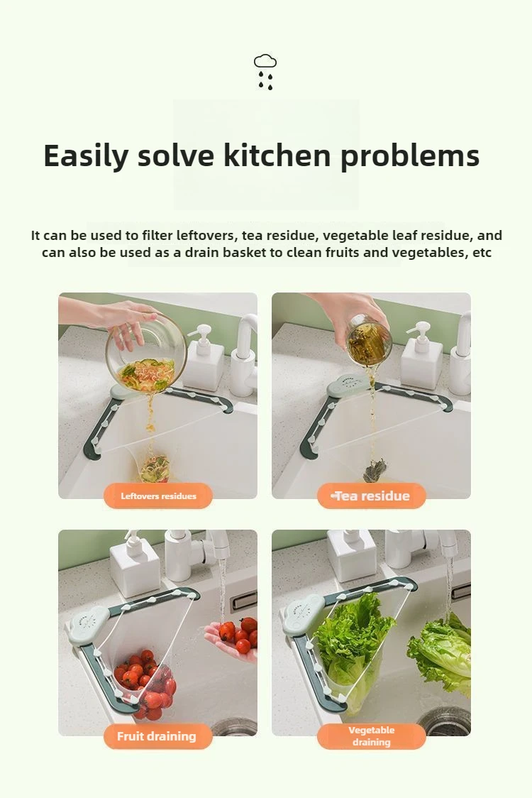 100% Brand New & High Quality. Name: Kitchen Sink Filter Material: Plastics Color: As shown Size: Drain Rack:15.6*9.8cm Filter Screen: Size: 9cm * 9cm (stretchable)